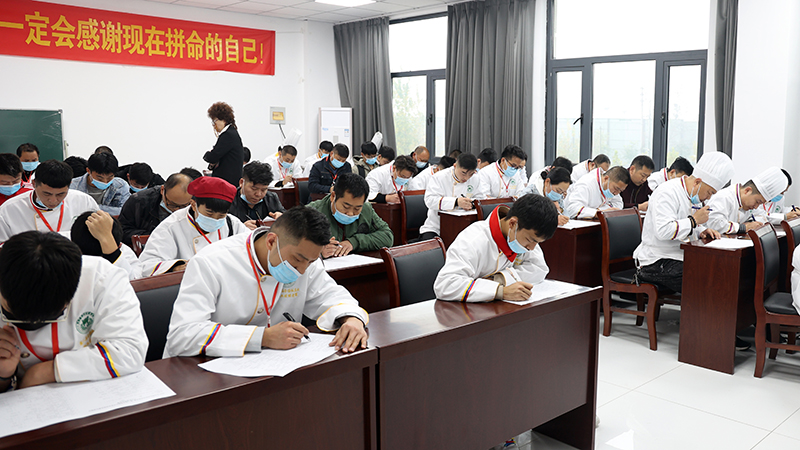 為取得優(yōu)異賽事成績,學(xué)校領(lǐng)導(dǎo)高度重視,高級烹飪系精心準(zhǔn)備,從遴選參賽選手、賽前認(rèn)真集訓(xùn)、賽中沉著應(yīng)賽;校長王景輝親自率隊(duì),帶領(lǐng)李海兵、李曉勇、鞏軒等7名老師,以及12名學(xué)生分別參加了職工組、學(xué)生組比賽,與來自全省的近400名選手同臺競技。參賽師生將高超廚技發(fā)揮的淋漓盡致,用實(shí)力與激情奉上一場精彩紛呈的饕餮盛宴。經(jīng)過兩天緊鑼密鼓的比賽,他們憑借嫻熟的專業(yè)技能,在眾多參賽選手中脫穎而出。