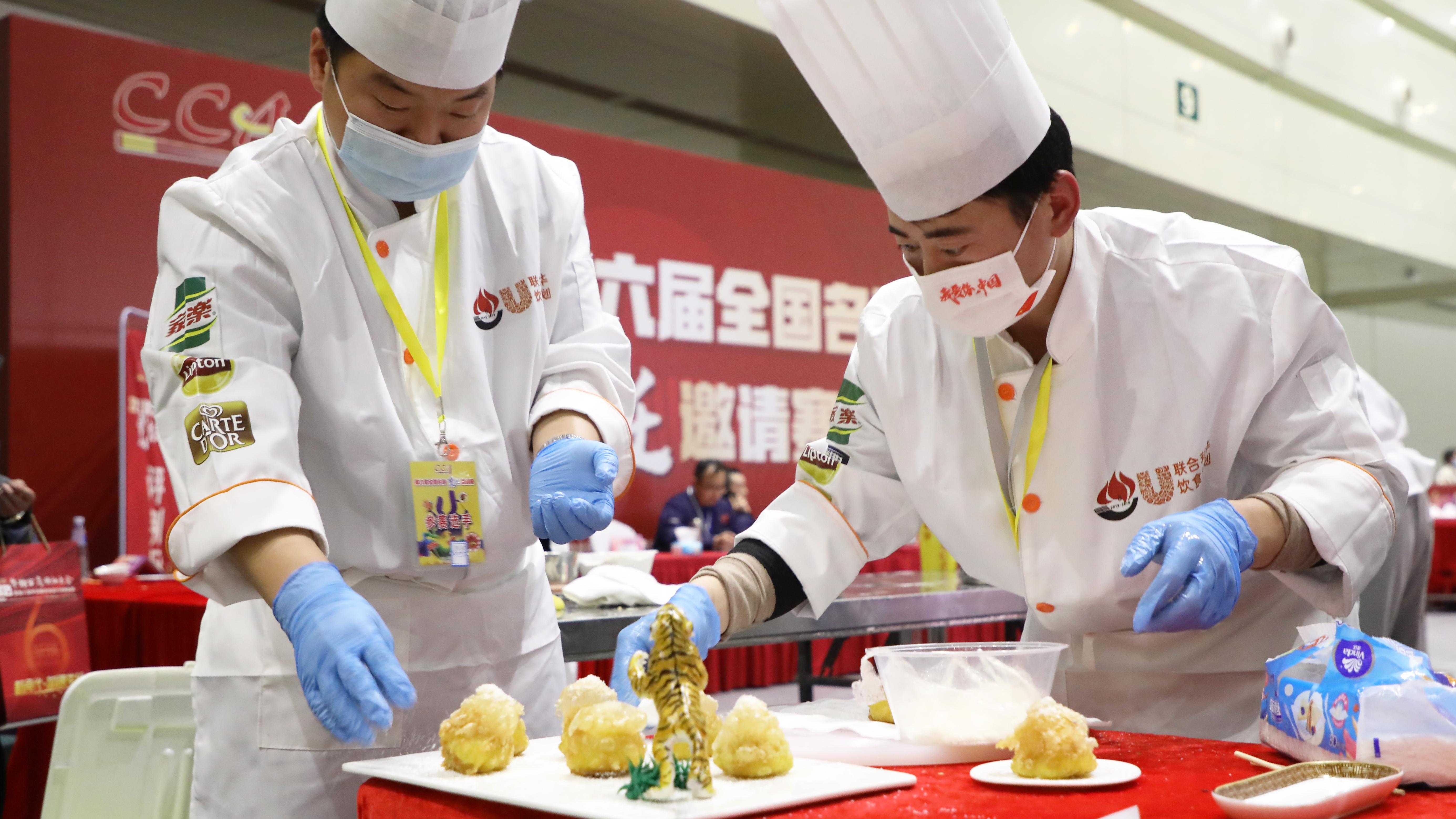 賽事中,參賽選手在規(guī)定的時間內完成中餐熱菜、創(chuàng)意涼菜、中式面點三個賽事任務。經過2天的激烈角逐,選手們紛紛亮出自己的獨家絕技,我校張帆等8位教師不僅采用不同的烹制手法、不同的口味料理與不同的刀工藝術,而且呈現出精湛的菜肴和面點制作功底,贏得了評委與現場觀眾的點贊與認可。其中,段剛毅、張帆老師分別獲得金獎,劉志源、徐鵬、馬進洋、張平偉、王鑫、許森老師分別獲得銀獎。其中,段剛毅老師和張帆老師的“天鵝酥”“鮑魚酥” 被授予第六屆全國名廚烹飪邀請賽的特色菜點,“泡泡星空油糕”“仿生西瓜包”被授予第六屆全國名廚烹飪邀請賽的推廣菜點。